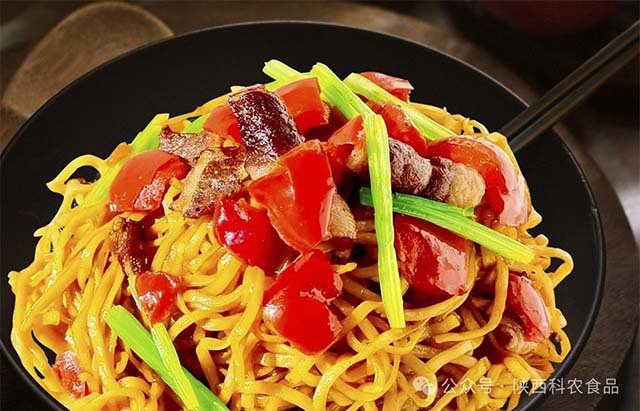 香辣焖面:芹菜、五花肉与红椒的热辣邂逅